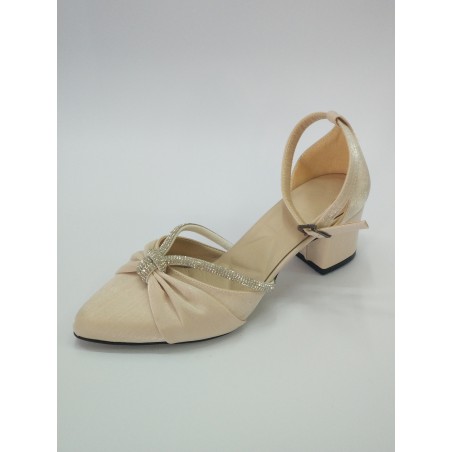 Poliriza kalın topuk saten kumaş ayakkabı krem